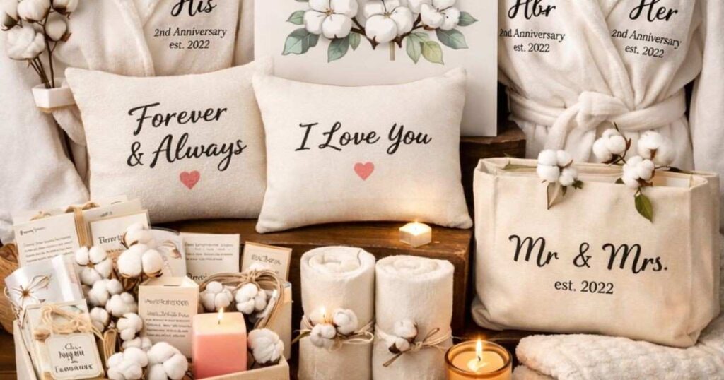 • Thoughtful cotton gift ideas include matching robes, embroidered cushions, or soft home accessories.