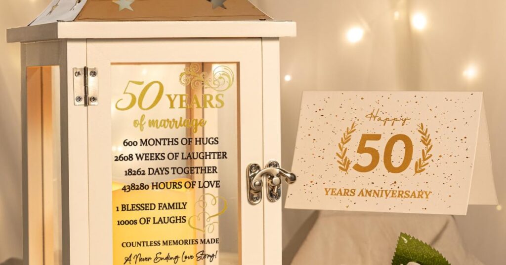 • Modern keepsake: Personalized gold items that celebrate 50 years together.